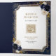Navy Blue Gold Floral All in One Crest Wedding Tri-Fold Invitation