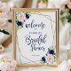 Navy Blue Gold Floral Bridal Shower Welcome Poster