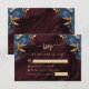 Navy Blue Gold Floral Burgundy Script Wedding RSVP Enclosure Card