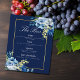 Navy Blue Gold Floral Elegant Wedding Bar Menu