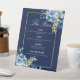 Navy Blue Gold Floral Elegant Wedding Bar Menu Pedestal Sign
