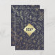 Navy Blue Gold Floral Pattern Wedding RSVP Card