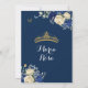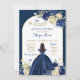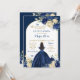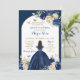 Navy Blue Gold Floral Princess Quinceañera Invitation