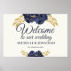 Navy Blue Gold Floral Wedding Welcome Sign 30x20