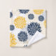 This attractive three piece towel set features a navy blue and bright gold graphic flower pattern as the background. The big bath towel is solid blue, with the flower pattern as a bottom border. The hand towel and wash cloth have the pattern, and contrast beautifully with the blue of the bath towel. Be sure to see the matching bath mat and ceramic bath set in our store. *Graphic Design credit to Malachi Designs on Etsy.