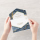 Navy Blue Gold Foil Abstract Fluid Ink Wedding All In One Invitation