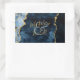 Navy Blue Gold Foil Agate Monogram Wedding Rectangular Sticker