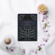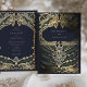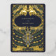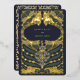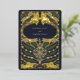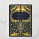 This exquisite Art Nouveau Dragonfly Wedding Invitation exudes elegance with its navy blue and gold foil design. The front features an ornate, symmetrical pattern with dragonflies whose wings are accentuated by the golden hue against a deep navy background, giving a sense of timeless sophistication. The initials 'HM' are tastefully incorporated within the year, nestled at the bottom, signifying the couple's upcoming union. The back of the invitation continues with the same regal colour scheme and thematic elements, inviting guests to the event with a classic typeface and clear details. This invitation is perfect for couples looking for a blend of classic artistry and modern finesse for their wedding stationery.