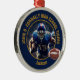 Navy Blue Gold Football Player Photo Christmas Metal Tree Decoration