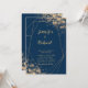 Our stunning navy blue wedding invitation featuring accents of champagne-hued bokeh lights is sure to wow your guests. The geometric gold frame brings elegance to this modern invite shimmering with bokeh sparkles.