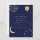 Elegant, modern minimalist outer space Galaxy moon star in navy blue and gold colour baby shower invitation