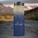 Navy Blue Gold Glitter Girly Fitness Monogram Name Thermal Tumbler