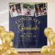 An elegant graduation photo booth backdrop featuring your grad's 3 special photos, name and graduation details set in chic typography on a navy blue and gold glitter background. Designed by Thisisnotme©