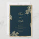 Navy blue gold glitter leaf floral Save the Date Invitation