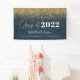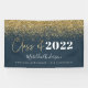 navy blue gold glitter script class of graduation party banner design. Modern gold and glitter effect and on trend bold typography and script text. Part of a collection.