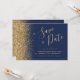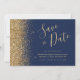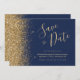 Navy Blue Gold Glitter Script Save the Date Invitation