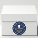 This modern navy blue and gold custom senior graduation party sticker features classy white typography under a high school or college grad cap for the class of 2024. Customize with your graduating year and senior graduate name under the elegant calligraphy.