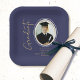 Navy Blue Gold Graduation Script Minimal Photo Paper Plate