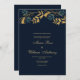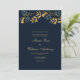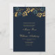 Navy blue gold grayish cyan foliage Wedding Invitation