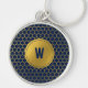 Navy Blue Gold Hexagon Pattern Monogrammed Initial Key Ring