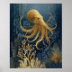 Navy Blue& Gold Kintsugi Octopus Underwater Poster