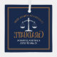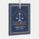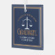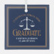 This custom navy blue and gold law school graduation Christmas ornament for a lawyer features the white scales of justice for the class of 2025. Customise with your graduating year under the elegant calligraphy for a great personalised university graduate gift.