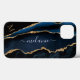 Navy Blue Gold Marble Monogram Name iPhone Case