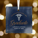 This chic navy blue and gold custom medical school graduation Christmas ornament for a nurse or doctor features white typography under a medical caduceus for the class of 2025. Customise with your graduating year under the elegant calligraphy for a great personalised university graduate gift.
