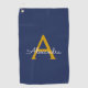 Navy Blue Gold Modern Script Girly Monogram Name Golf Towel