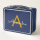 Navy Blue Gold Modern Script Girly Monogram Name Metal Lunch Box