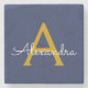 Navy Blue Gold Modern Script Girly Monogram Name Stone Coaster