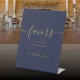Navy Blue Gold Modern Script Wedding Favors Table Pedestal Sign