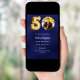 A modern, minimalist photo invitation for a 50th birthday party. A navy blue uneven coloured background. Personalise and add a photo and party details.