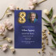 A modern, minimalist photo invitation for a 80th birthday party. A navy blue uneven coloured background. Personalise and add a photo and party details.