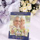 Create your own unique photo collage. Use four, 4 of your favourite photo. Personalise and add a name and age. A navy blue coloured background, faux gold frames and golden text.