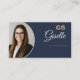 Navy Blue Gold Photo Monogram Luxury Realtor Business Card
