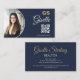 Navy Blue Gold Photo Monogram Realtor QR Code Business Card
