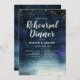 Elegant wedding rehearsal dinner invitation with gold glitters and navy blue watercolor ombre. This template already has texts that has all the information you need for your event. Texts are easily customisable online.