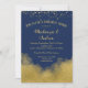 An elegant navy blue and gold wedding rehearsal dinner invitation featuring gold glitter confetti dust and gold bling at the bottom.