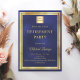 Celebrate the special milestone with this elegant retirement party invitation. Featuring a rich navy blue background with an uneven texture, this design is highlighted by a faux gold frame. The golden-colored lettering adds a touch of sophistication, making it perfect for the occasion. Personalize it by adding your business logo, the retiree's name and all your party details to create a truly unique invitation.