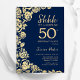 Navy Blue Gold Roses Surprise 50th Birthday Invitation