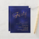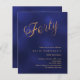 A modern, stylish invitation for a 40th birthday party. A navy blue, uneven coloured background and the word Forty written with elegant large script letters in faux gold. Personalise and add a name and party details.