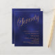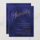 A modern, stylish invitation for a 70th birthday party. A navy blue, uneven coloured background and the word Seventy written with elegant large script letters in faux gold. Personalise and add a name and party details.