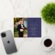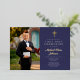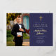 Personalised Navy Blue Gold Script Boy Photo First Communion Foil Invitation.