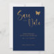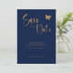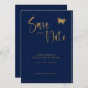 Navy Blue & Gold Script: Glitter Butterfly Wedding Save The Date