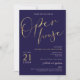 Navy Blue & Gold Script Logo Business Open House Invitation