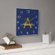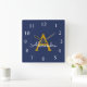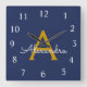 Navy Blue Gold Script Monogram Girly Name Square Wall Clock
