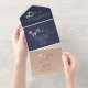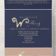Navy Blue Gold Script Photo Wedding All In One Invitation
