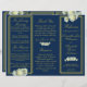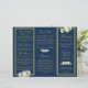 Navy Blue Gold Script Rose Trifold Wedding Program