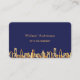 A navy blue background, with a faux gold city skyline as decor. Personalise and add your name and a text on front. Golden letters